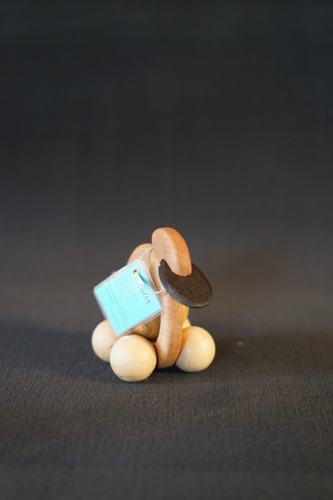 Kugeltiere aus Holz für Sammler Ente “ Gerda“ aus folgenden Holzarten: Schnabel WENGE, Corpus PLATANE, Gr. Kugel TUJA, Räder BUCHE